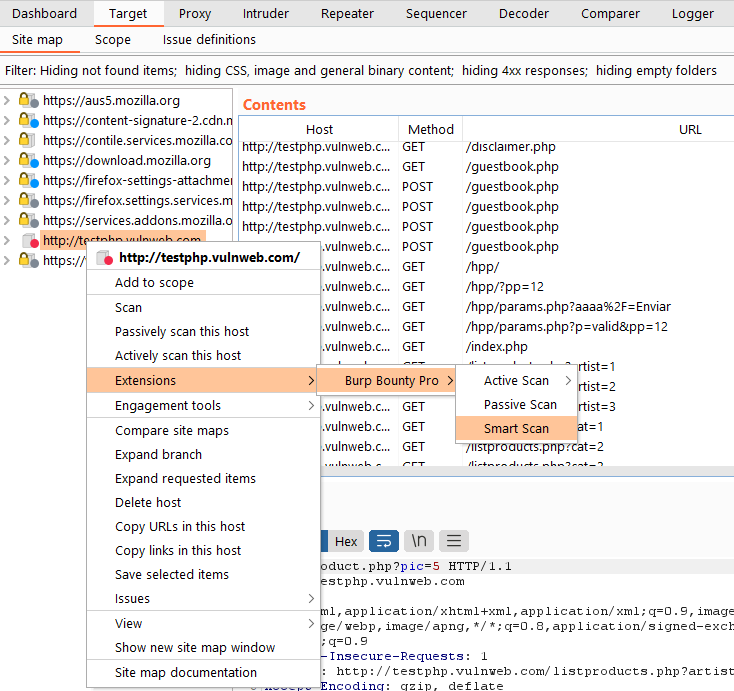 The Smart Scan is a scanner that uses Burp Bounty Pro profiles to perform automatic attacks simulating the attacks that you would perform manually in a web application.
