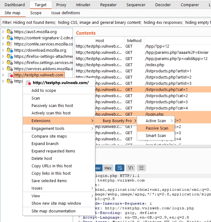 If you scan one or multiple requests with the Passive scan, you will launch against the request/response the profiles that are active in the tab “Profiles-> Passive Request Profiles” and “Profiles-> Passive Response Profiles”. This scanner does not perform any request against the target, it only analyses the request/responses passively.